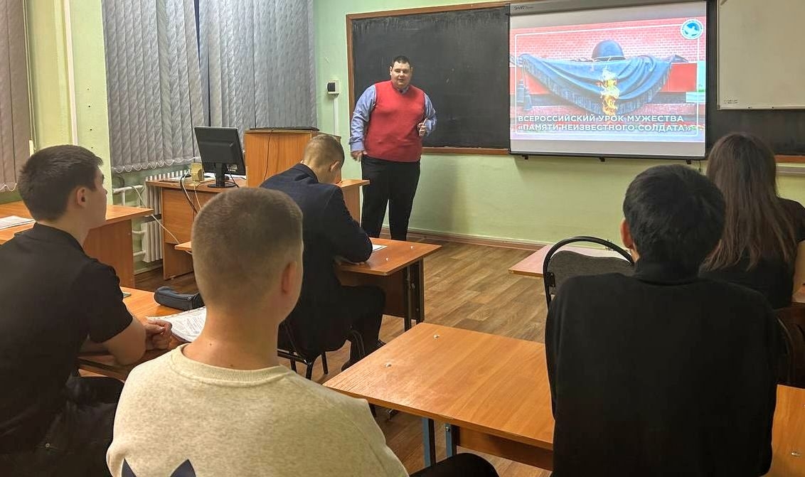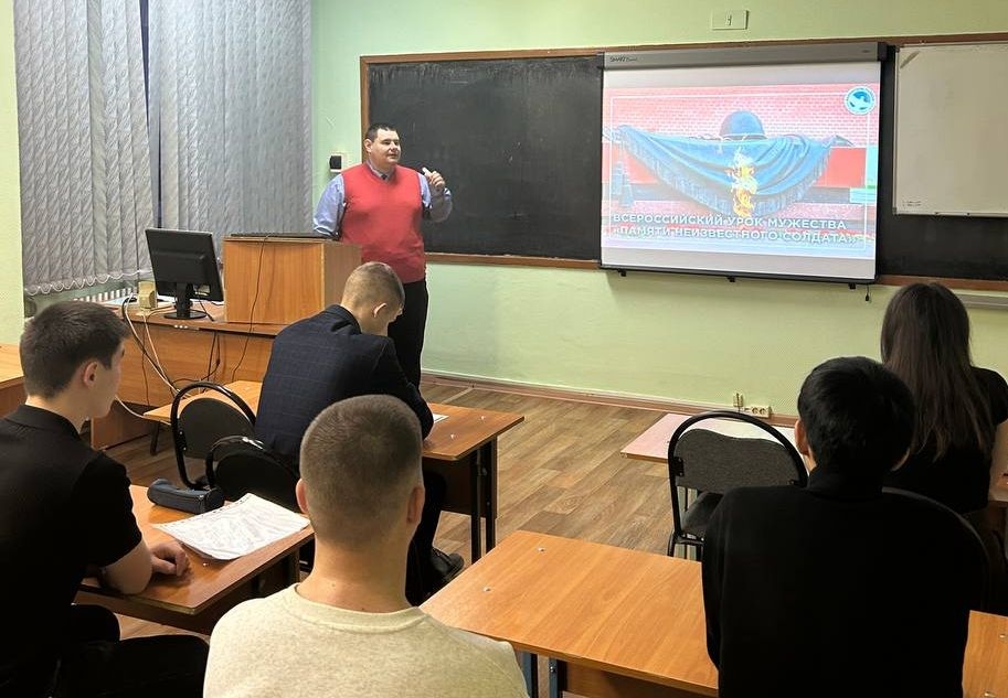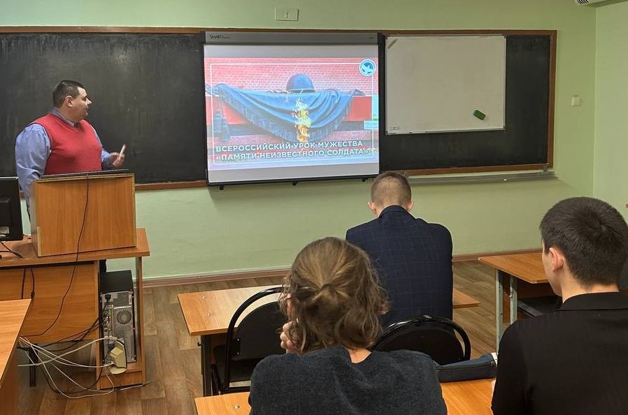 В Орском гуманитарно-технологическом институте (филиале) ОГУ для студентов факультета педагогического образования старшим преподавателем кафедры истории, философии и социально-гуманитарных наук Михаилом Константиновичем Мусафировым был проведен Всероссийский урок мужества «Памяти Неизвестного солдата».