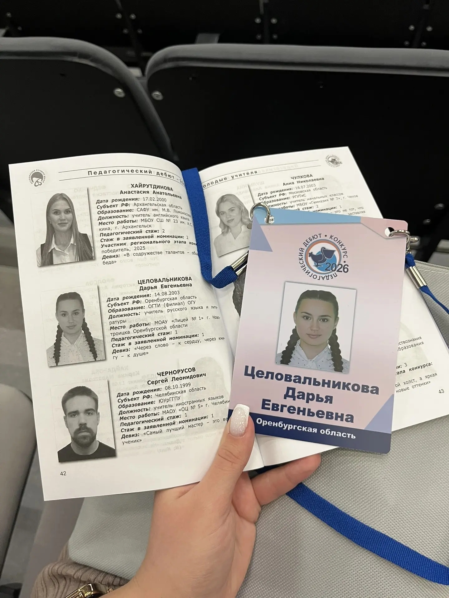 Оренбургскую область в номинации "Молодые учителя" представила Дарья Евгеньевна Целовальникова - студент Орского гуманитарно-технологического института (филиала) ОГУ группы 21-ПО(б)РЯЛ, учитель русского языка и литературы Лицея № 1 г. Новотроицка.